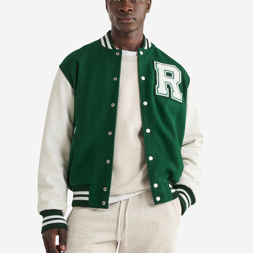 แจ็คเก็ตเบสบอลวิทยาลัยชายคุณภาพสูงสำหรับฤดูหนาว ผ้าฝ้าย 100% มีฮู้ด ซิป ปิดด้านหน้า สวมใส่สบาย บริการ OEM ซับในผ้าฝ้าย