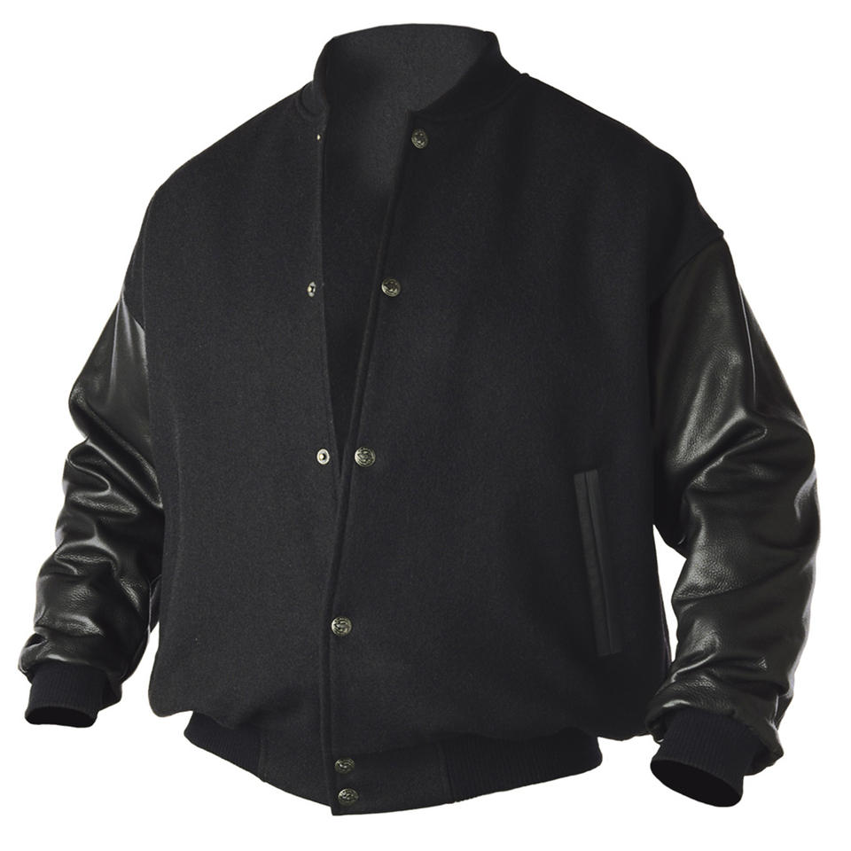 แจ็คเก็ตเบสบอลแบบ Letterman คุณภาพสูงสำหรับผู้ชาย สไตล์วาร์ซิตี้ ผ้าขนสัตว์ คอตั้ง แบบกลับด้านได้ พร้อมโลโก้ด้านหน้า ผลิตจากโรงงาน ขายส่ง