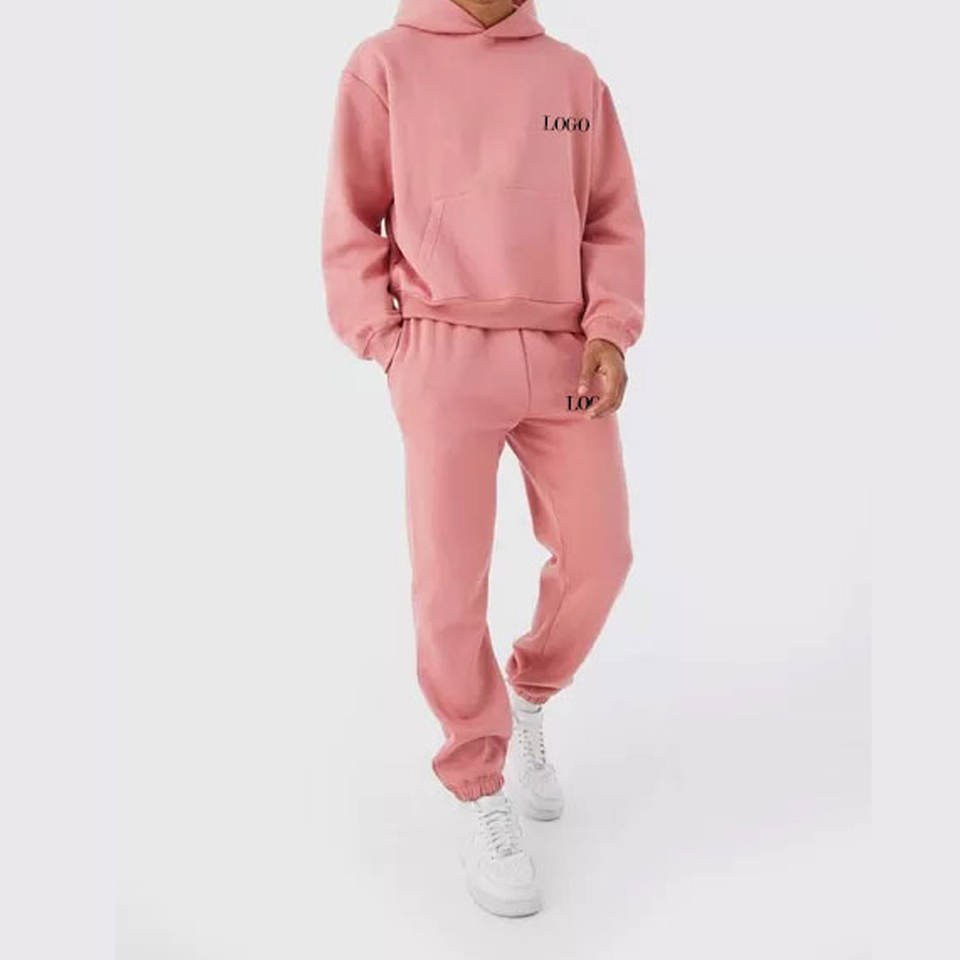 "High Quality Men's Cotton Tracksuit Thick Jogger Sweat Suit Custom Logo Hoodie and Sweatpants Two Piece Gym Wear Wholesale Set"