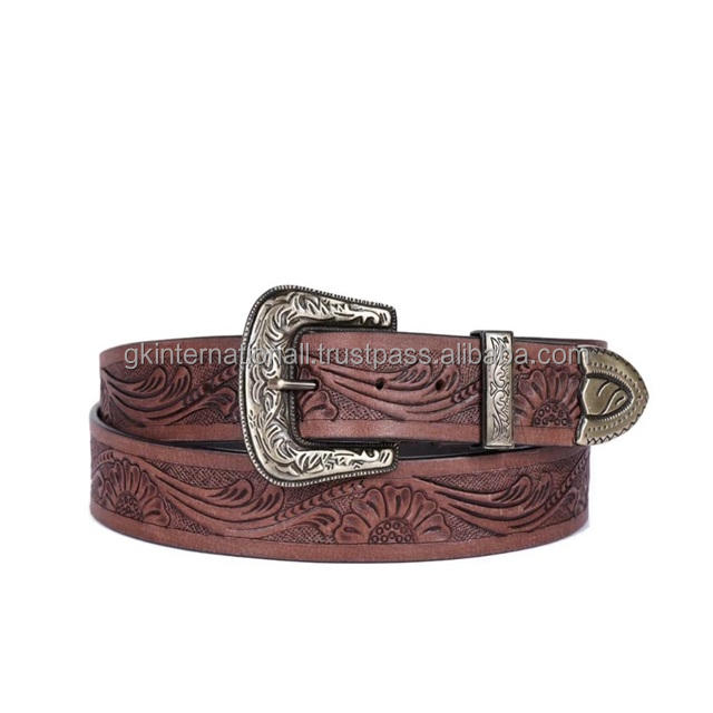 เข็มขัดคาวบอยคุณภาพสูงสำหรับผู้ชาย หนังวัวแท้ หัวเข็มขัดโลหะผสมสังกะสี หนังฟอกฝาดแบบวีแกน งานฝีมือประณีต