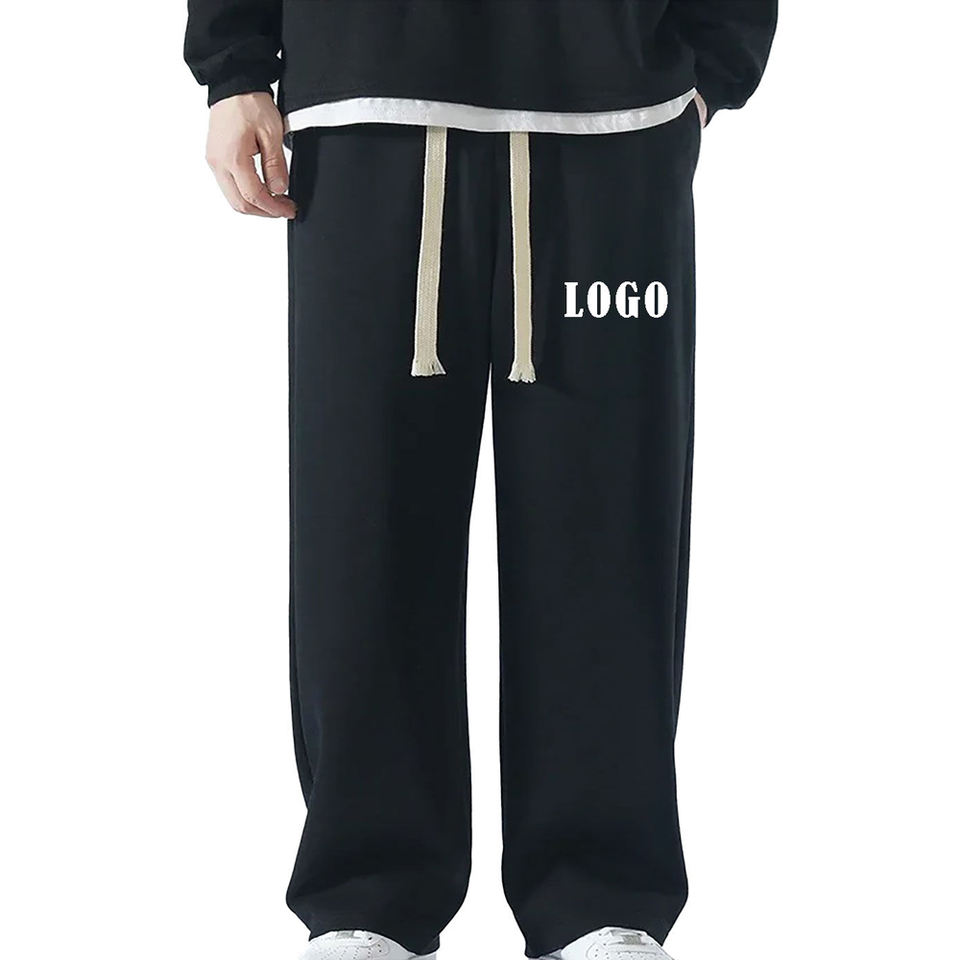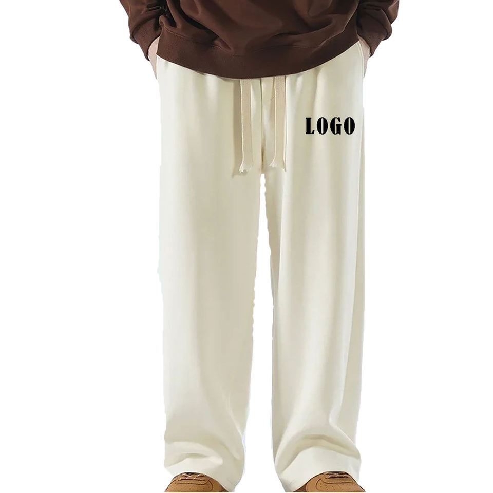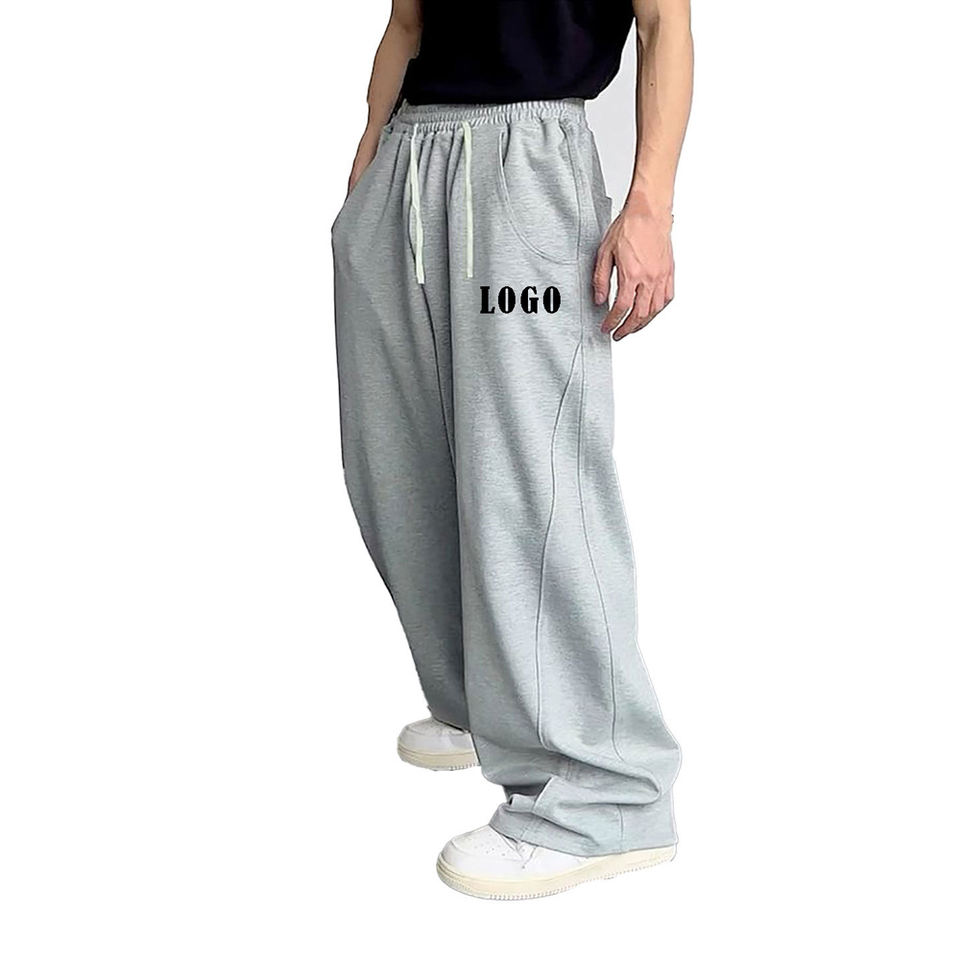 กางเกงขายาวทรงบэгกี้ผู้ชายคุณภาพสูง ผ้าฝ้าย 100% เอวยางยืด ระบายอากาศได้ดี ทรงโอเวอร์ไซส์ ดีไซน์เรียบง่าย รับสกรีนโลโก้