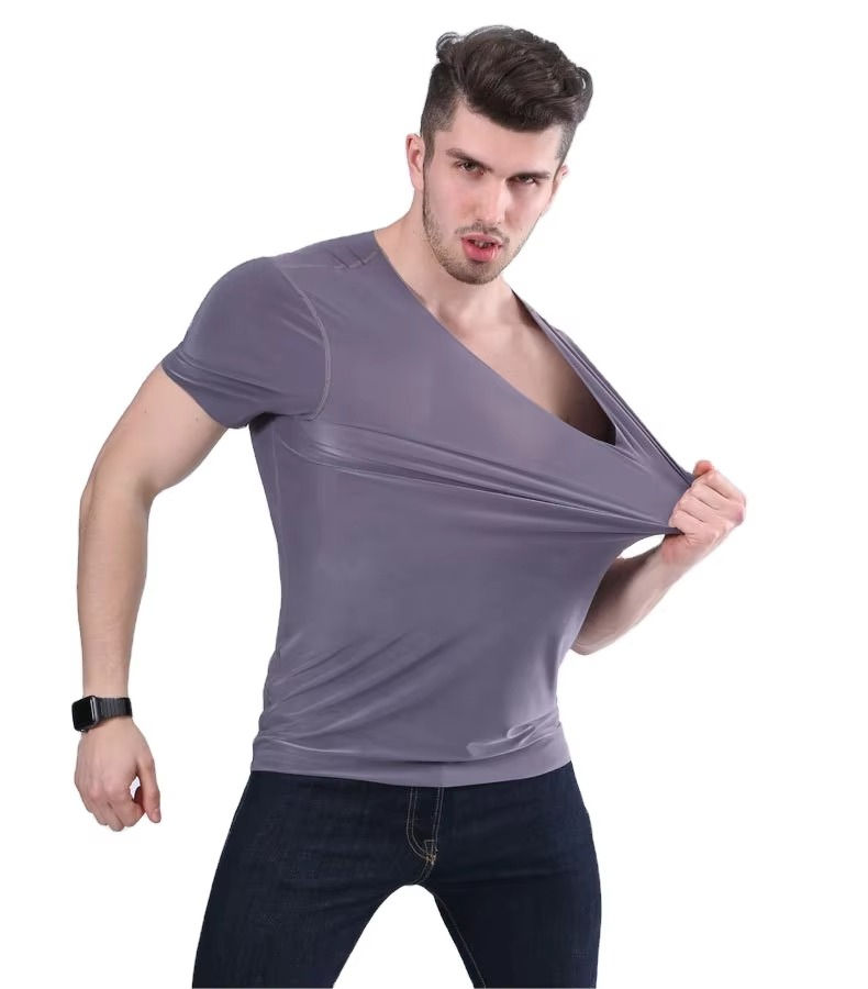 เสื้อยืดคอกว้างทรงวี แขนสั้น ผ้าบาง ยืดหยุ่น ระบายอากาศดี คุณภาพสูง สำหรับผู้ชาย ดีไซน์โดดเด่น ราคาส่ง