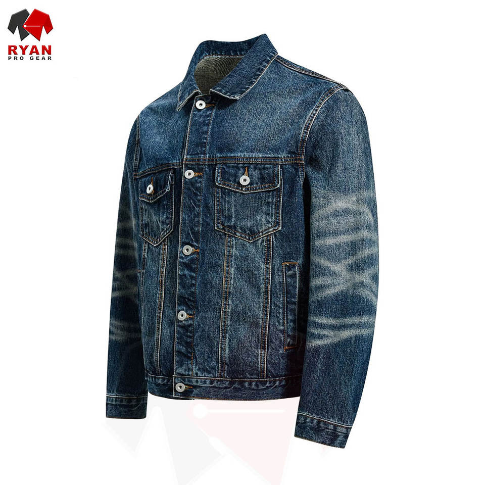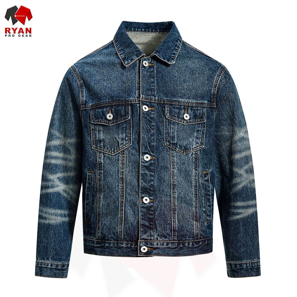 แจ็คเก็ตยีนส์ผู้ชายคุณภาพสูง รับออกแบบตามสั่ง ผลิตแบบ OEM และ ODM ปิดกระดุม สวมใส่ได้ทุกวันอย่างมีสไตล์