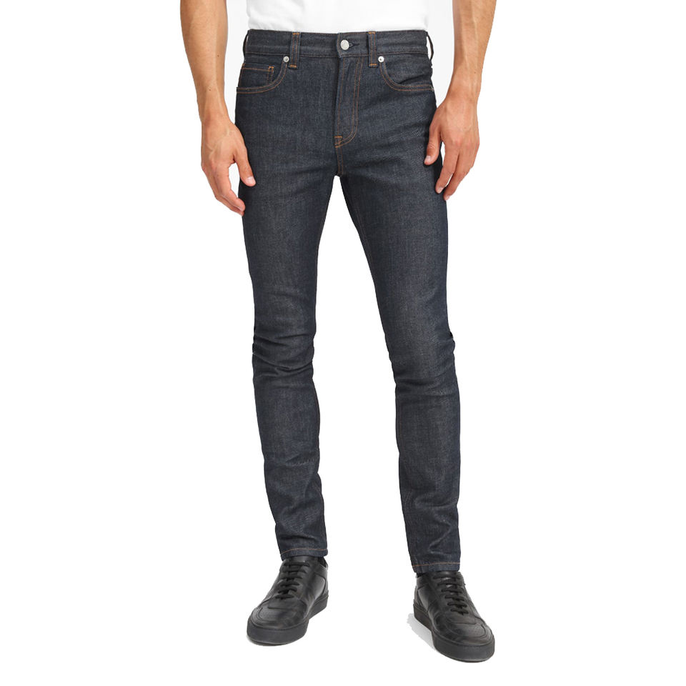 กางเกงผ้ายีนส์ทรงสกินนี่สำหรับผู้ชาย,กางเกงคลาสสิกทรงสลิมฟิตใส่แล้วมีความสุขสีน้ำเงิน