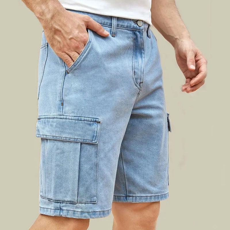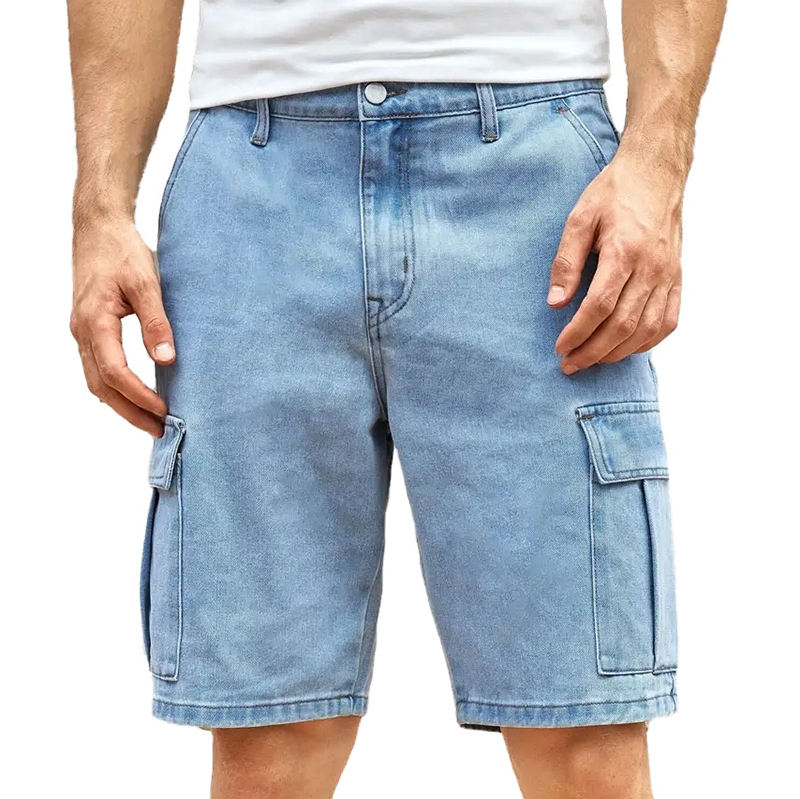กางเกงยีนส์ขาสั้นผู้ชายคุณภาพสูง สไตล์สตรีทแวร์ทรงหลวม ใส่สบาย ระบายอากาศได้ดี ผลิตจากผ้าฝ้าย รับผลิตกางเกงขาสั้นพร้อมปักโลโก้ตามสั่ง