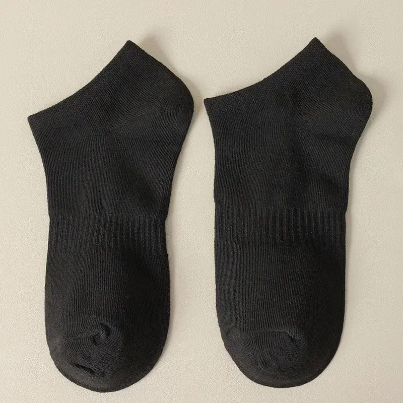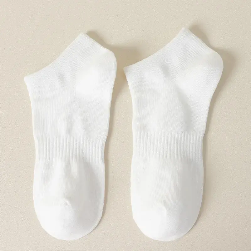 ถุงเท้าข้อสั้นผู้ชายคุณภาพสูง ดีไซน์เนอร์ สีขาวดำ ผ้าฝ้าย โลโก้ปรับแต่งได้ กันลื่น แห้งเร็ว ใส่สบายสำหรับฤดูร้อน แบบลำลองและแบบกีฬา ODM