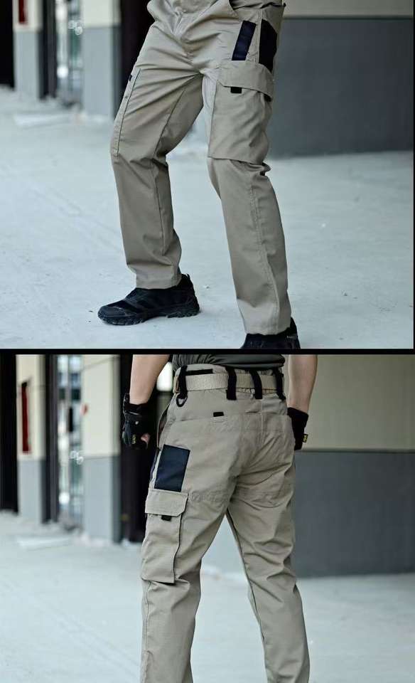 กางเกงทำงานผู้ชายคุณภาพสูง ทนทาน ผลิตจากโพลีเอสเตอร์ ดีไซน์ทรงหลวม ยืดหยุ่นได้ เหมาะสำหรับคนไซส์ใหญ่ ใช้สำหรับงานกลางแจ้ง