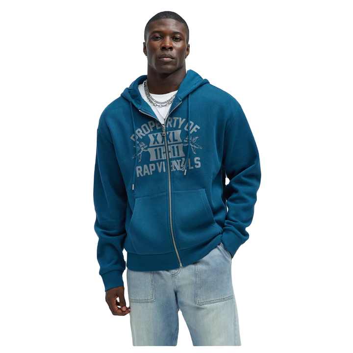 เสื้อฮู้ดผ้าฟลีซของผู้ชายเสื้อฮู้ดผ้าคอตตอน100% ทรงหลวมมีซิปปักลายออกแบบได้เองเป็นมิตรต่อสิ่งแวดล้อม