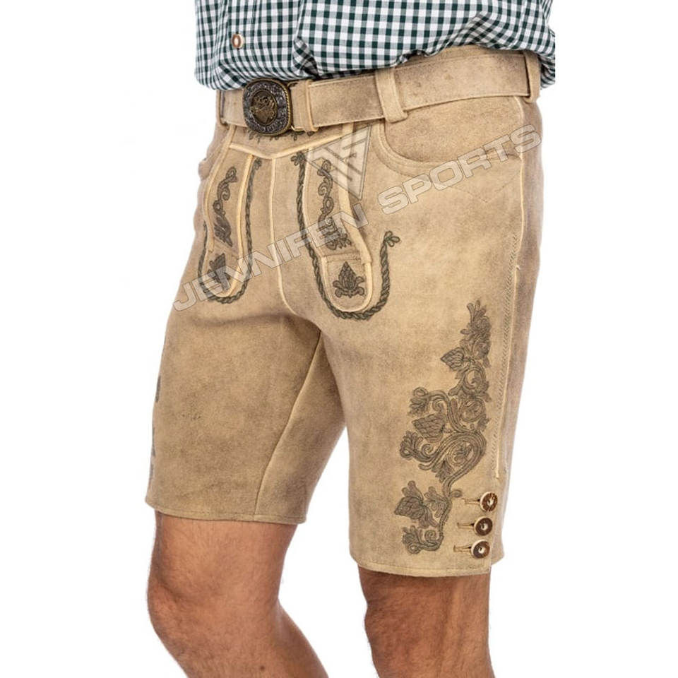 หนังวัวแท้สำหรับผู้ชายหนัง nubuck lederhosen 100% แท้แบบสั้นงานปักกระดุมด้านหน้าล้วนผ้าใยสังเคราะห์