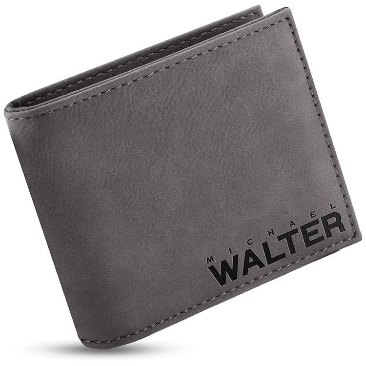 กระเป๋าสตางค์หนังคุณภาพสูงสำหรับผู้ชาย แบบกำหนดเองได้ สามารถสลักเลเซอร์ได้ กระเป๋าหนังเทียม กระเป๋าสตางค์ผู้ชายลำลอง