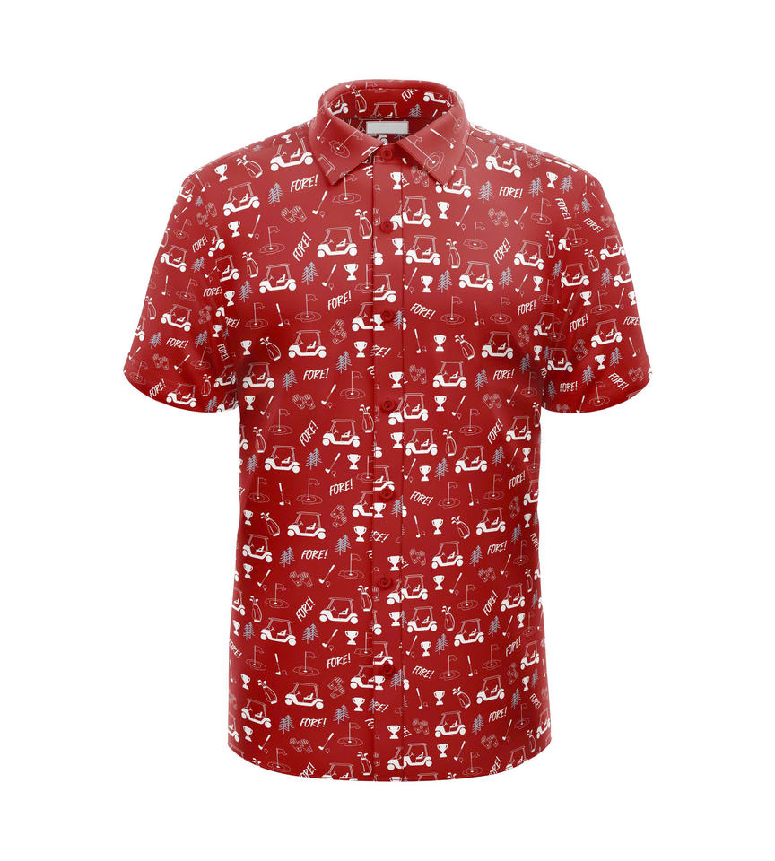 เสื้อเชิ้ตติดกระดุมสำหรับผู้ชายคุณภาพสูง ลายพิมพ์ธีมกอล์ฟที่สนุกสนาน วัสดุระบายอากาศและซับเหงื่อ เหมาะสำหรับกีฬากลางแจ้ง
