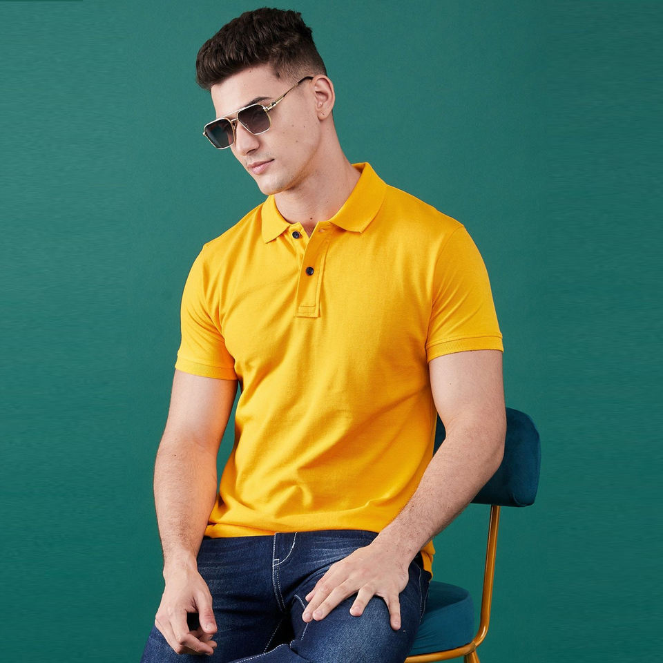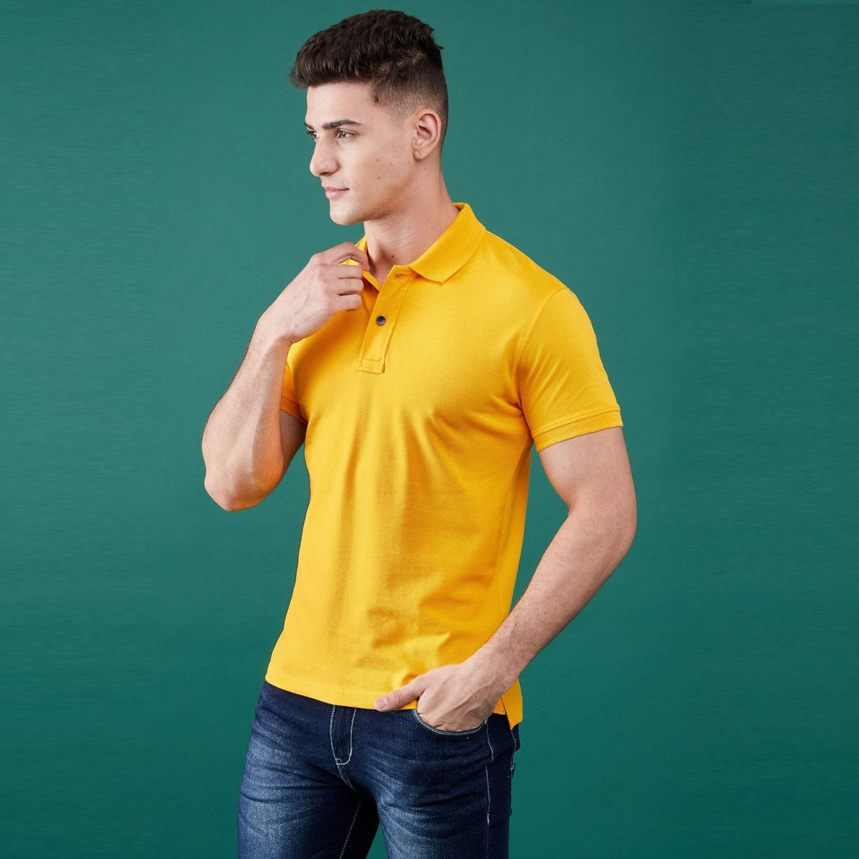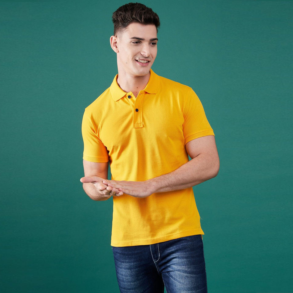 เสื้อยืดโปโลสำหรับผู้ชายเสื้อกอล์ฟผ้าคอตตอนกันตกป้องกันการหดตัวคอเสื้อพับ100%