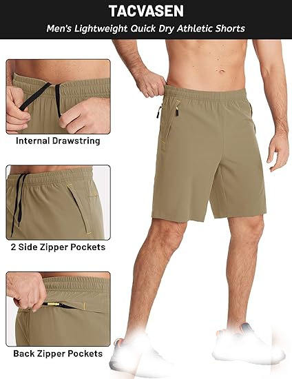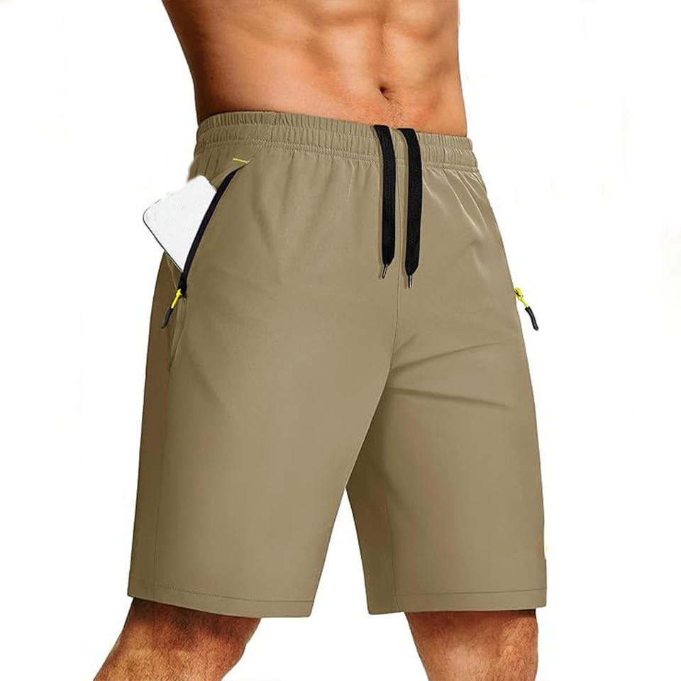 กางเกงขาสั้นออกกำลังกายสำหรับผู้ชายกางเกงกีฬาแห้งเร็วมีกระเป๋าระบายอากาศลายพื้นพื้นพื้น
