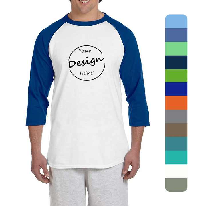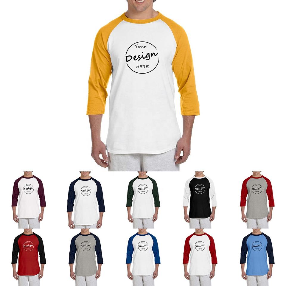 เสื้อยืดแขน3/4ผ้าคอตตอนคอมบ์เข้ารูปเสื้อยืดสีพื้นพิมพ์ลายพัฟชุดกีฬาสำหรับเล่นยิมของผู้ชายแนวสปอร์ต