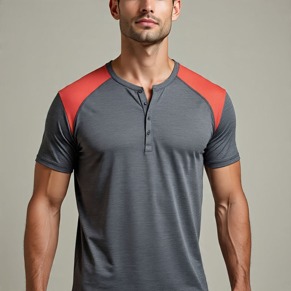 เสื้อยืดผู้ชายแขนสั้น Henley ระบายอากาศโพลีเอสเตอร์/ ผ้าฝ้ายลำลอง