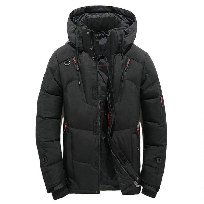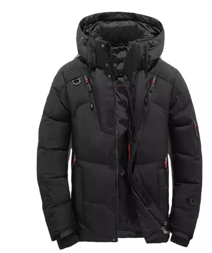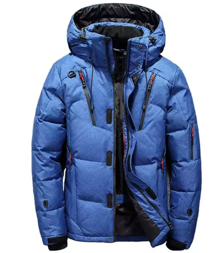 แจ็กเก็ตขนเป็ดมีฮู้ดของผู้ชายเสื้อแจ็คเก็ตเข้ารูปแบบมีซิปสำหรับฤดูหนาว