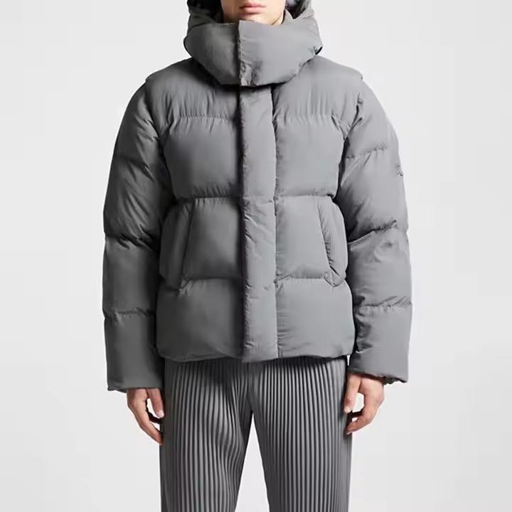 High Quality Men's Hooded Puffer Jacket Winter Warm Thick for Outdoor Customizable Casual Zipper Coated Plain Dyed for Spring