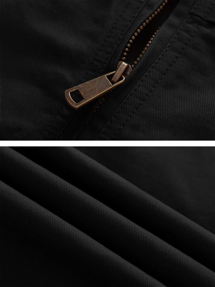 เสื้อแจ็คเก็ตผู้ชายคุณภาพสูง ผ้าแคนวาส ซิปเต็มตัว ระบายอากาศได้ดี รับสกรีนโลโก้