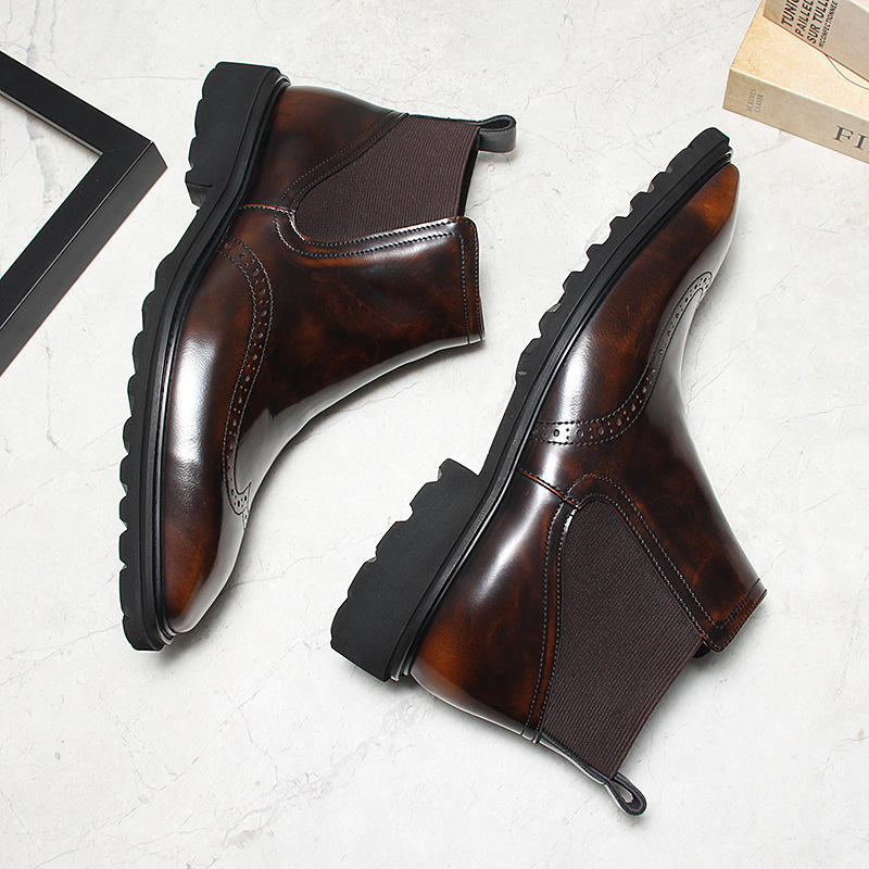 รองเท้าบูทเชลซีแบบผูกเชือกสำหรับผู้ชายคุณภาพสูง หนังแท้ พื้นยางกันลื่น ระงับกลิ่นอับ สไตล์อังกฤษย้อนยุค แฟชั่นทันสมัย