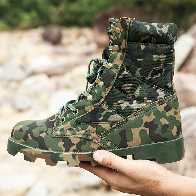 รองเท้าบูทหนังผู้ชายคุณภาพสูงแบบตะวันตก หุ้มข้อสูง ผูกเชือก หนังกลับ ใส่สบาย เหมาะสำหรับกิจกรรมกลางแจ้ง ฝึกซ้อมทางยุทธวิธี มีหลายสี