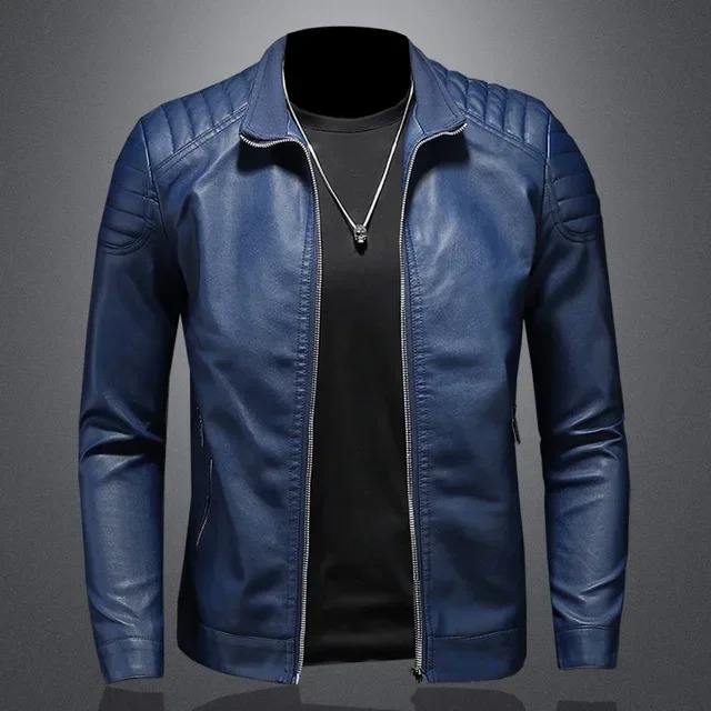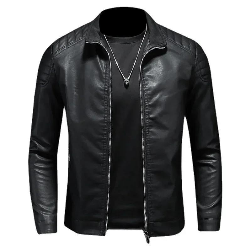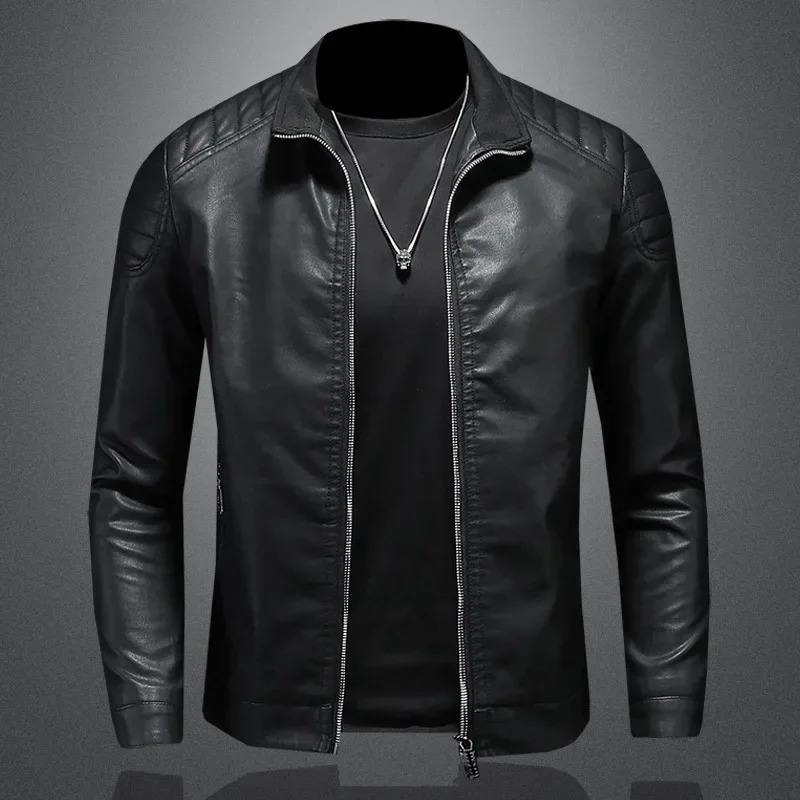 เสื้อแจ็คเก็ตหนังผู้ชายคุณภาพสูง สีดำขาว แบบสั่งทำพิเศษ คอตั้ง ปิดซิป ผ่านกระบวนการเคลือบ ขายส่งเสื้อผ้าชั้นนำ