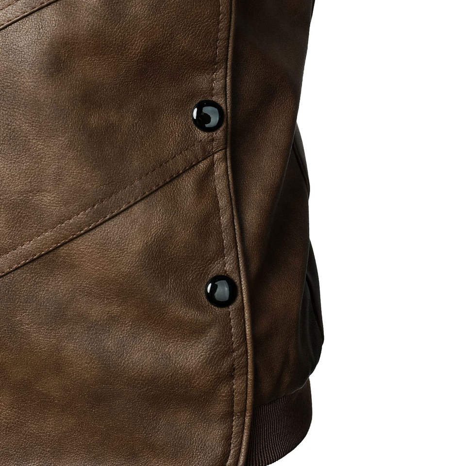 เสื้อแจ็คเก็ตหนังผู้ชายคุณภาพสูง ปกพับลง ผ้า PU สีสั่งทำ แบรนด์สั่งทำด้านหน้า กันลม ระบายอากาศได้ดี
