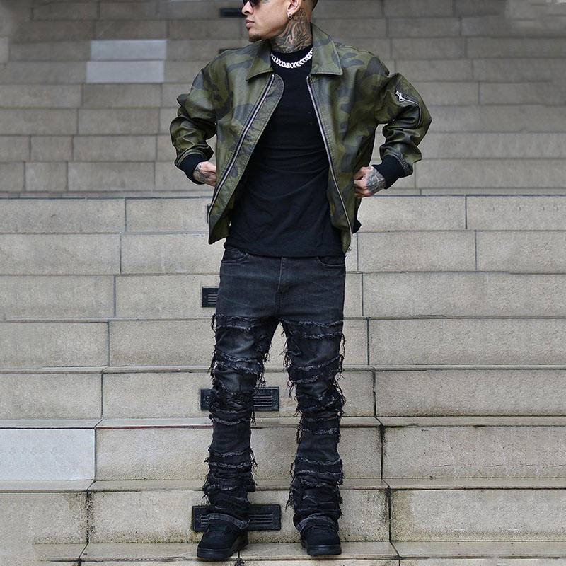 แจ็คเก็ตหนังผู้ชายคุณภาพสูง แจ็คเก็ตหนังแท้ลายพรางสำหรับผู้ชาย แจ็คเก็ตหนัง PU