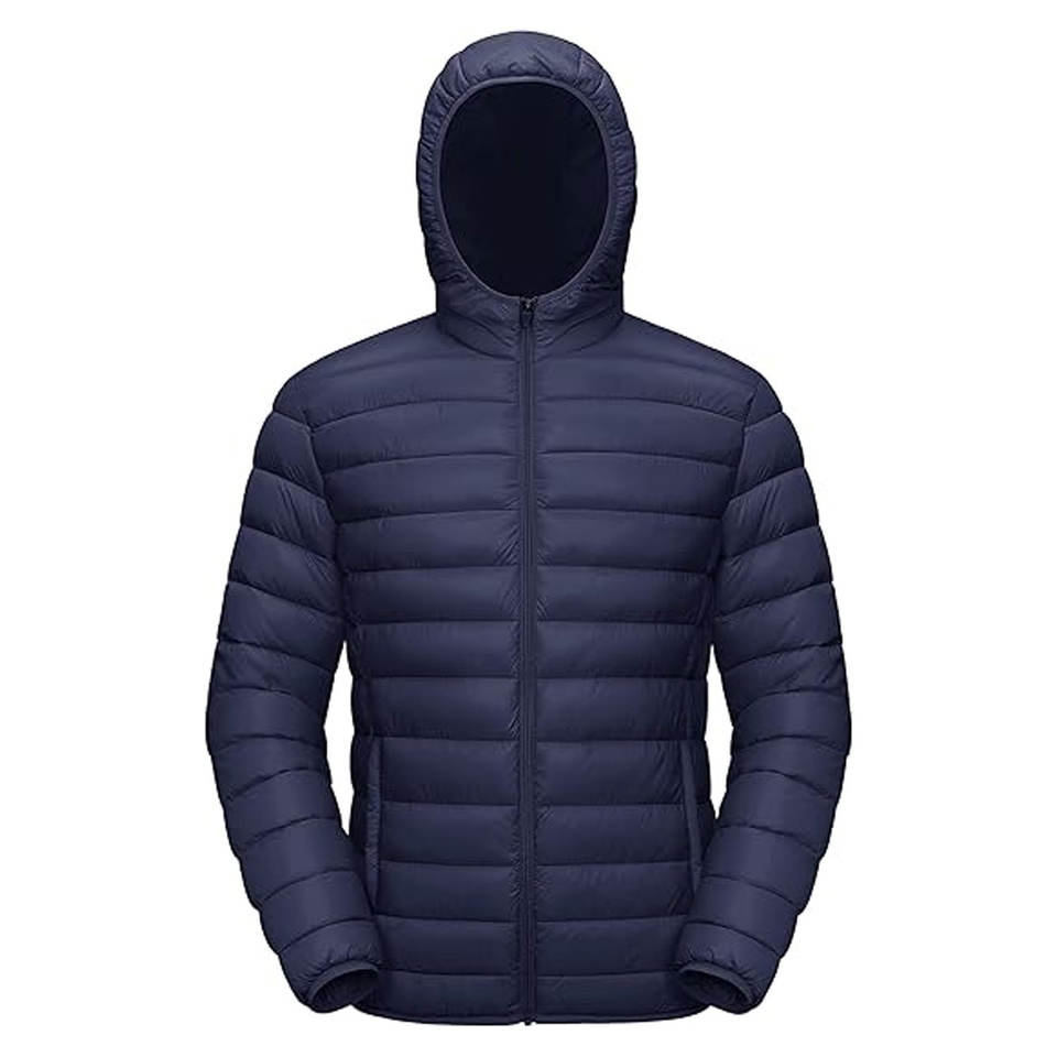 เสื้อแจ็คเก็ตพัฟเฟอร์น้ำหนักเบาคุณภาพสูงสำหรับผู้ชาย พร้อมฮู้ด กันน้ำ กันลม และบุฉนวน ดีไซน์แบบ OEM ตามสั่ง