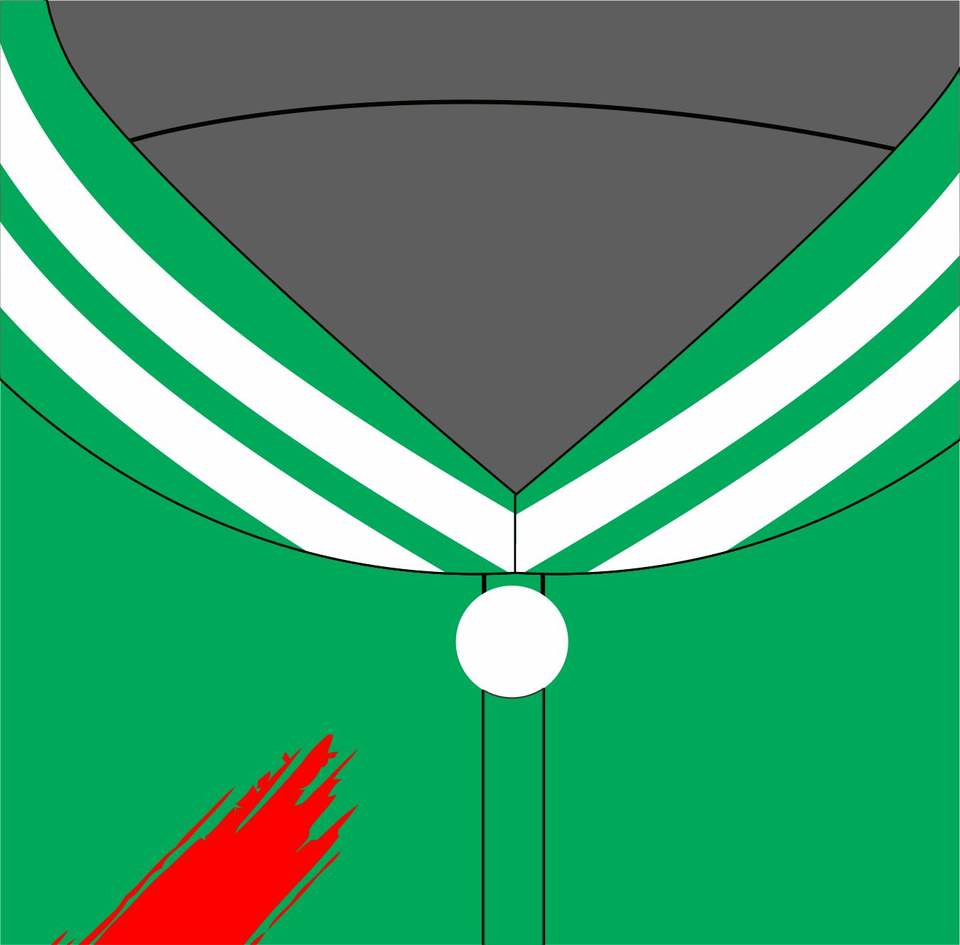 ด้านหน้า, ด้านหลัง, แขนเสื้อด้านซ้าย, แขนเสื้อด้านขวา, ขอบล่าง, หลังคอ