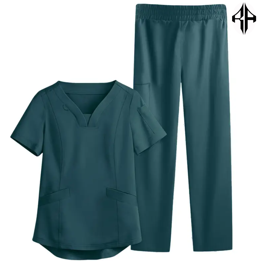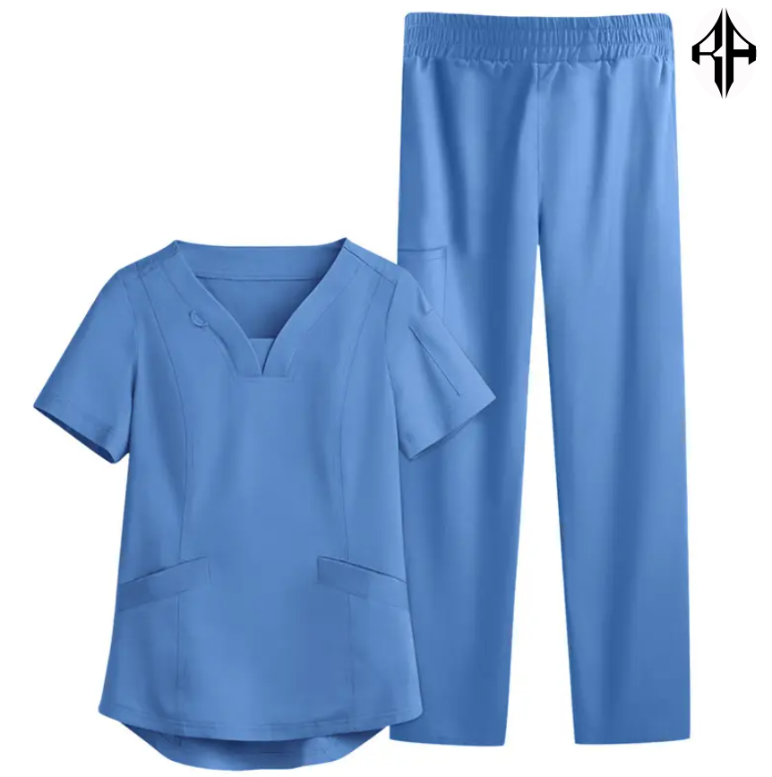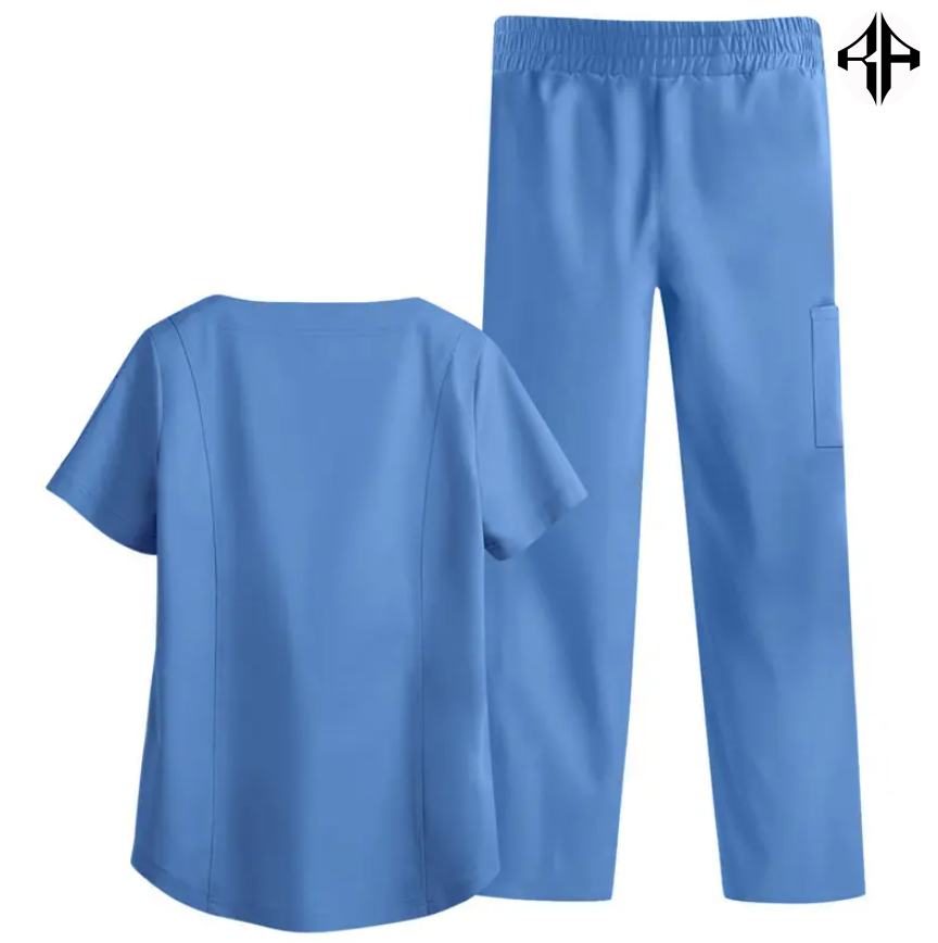 ชุดเครื่องแบบพยาบาลหลายกระเป๋าสำหรับผู้ชายชุดเสื้อกางเกงผ้าทอเนื้อนุ่มและเสื้อขัดผิว
