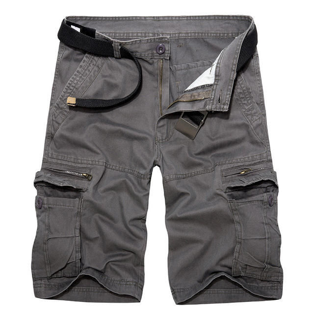 กางเกงขาสั้นคาร์โก้ผู้ชายคุณภาพสูง สไตล์วินเทจ ตัดเย็บตามสั่ง สตรีทแวร์ กระเป๋าหลายช่อง เหมาะสำหรับทำงาน เดินป่า ผ้าฝ้ายผสมสแปนเด็กซ์ สีพื้น