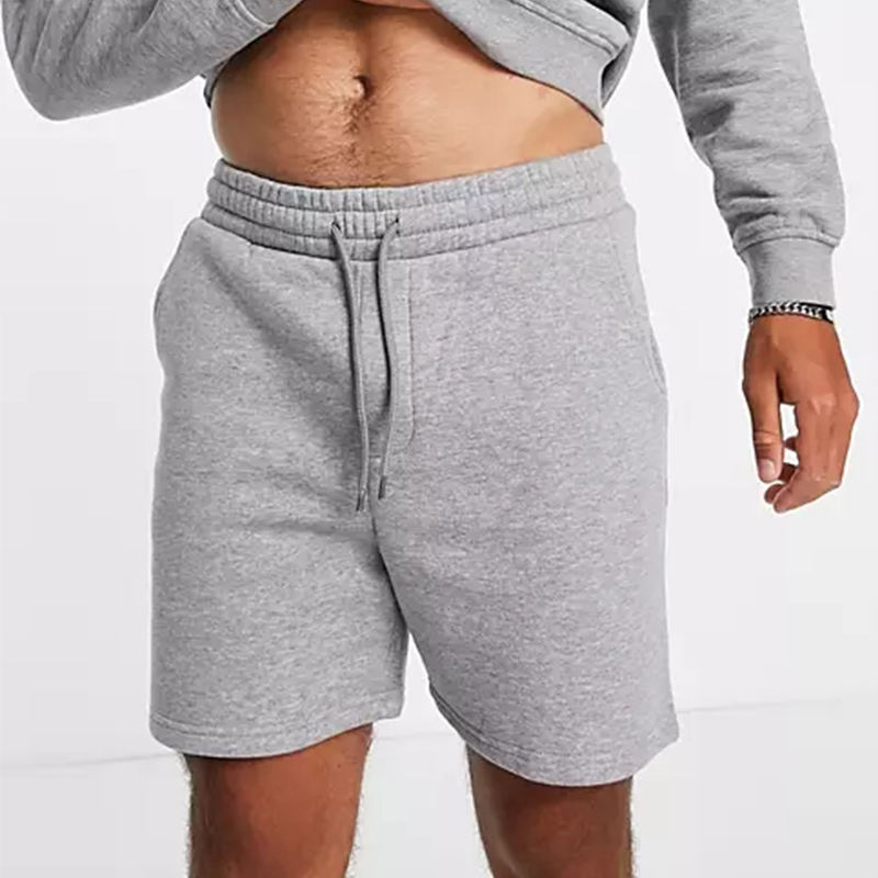 กางเกงขาสั้นผู้ชายเอวกลางเอวยางยืดสีเทาแบบกำหนดเองกางเกงกีฬาผ้าฝ้ายรุ่นเฮฟวีเวตสำหรับใส่เล่นกีฬาฤดูหนาว