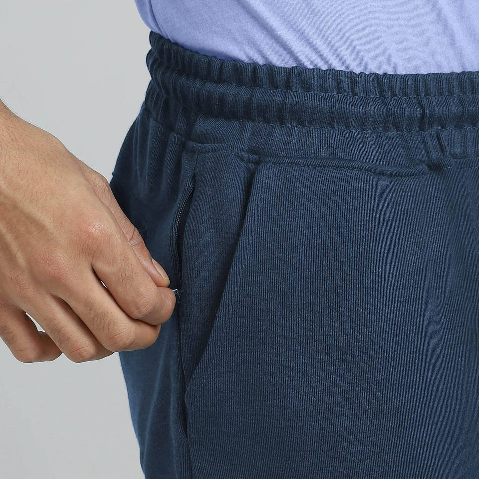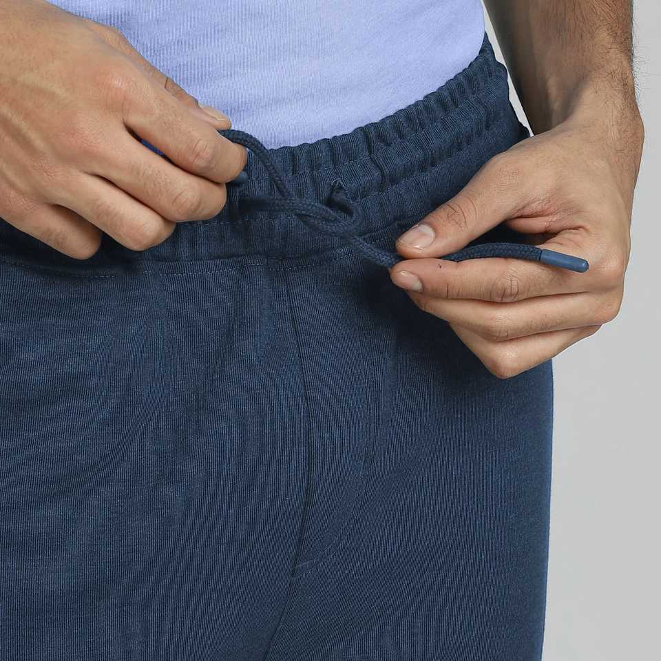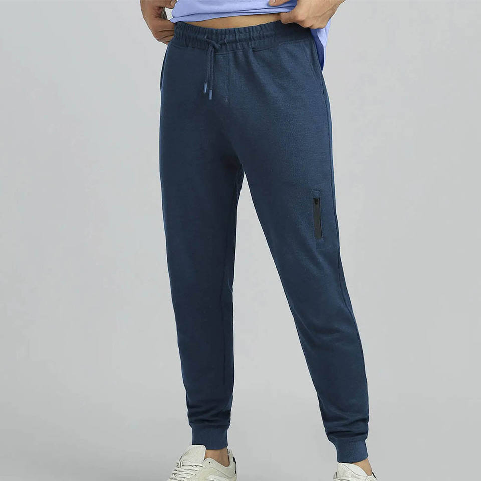กางเกงจ็อกเกอร์ผู้ชายสีน้ำเงินเข้มคุณภาพสูง ระบายอากาศได้ดี ผ้าขนสัตว์เนื้อปานกลาง ทรงวินเทจ ขอบยางยืดแบบริบสองชั้น กระเป๋าข้างสองข้าง สไตล์ลำลอง