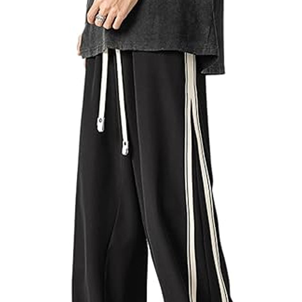กางเกงวอร์มไนลอนคุณภาพสูงสำหรับผู้ชาย ทรงหลวม เอวยางยืด กางเกงวิ่งออกกำลังกาย