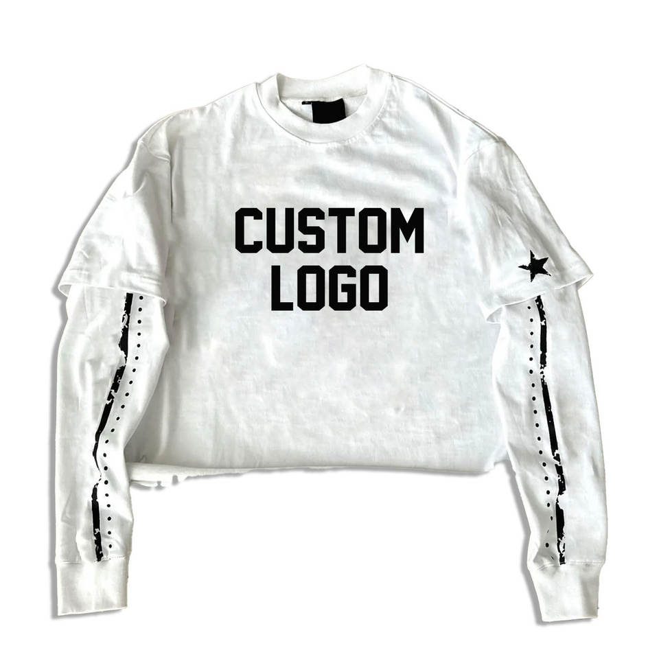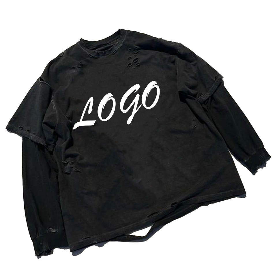 เสื้อยืดคอกลมสำหรับผู้ชายพิมพ์ลายตัวอักษรแขนยาวผ้าคอตตอนผ้า100% โอเวอร์ไซส์ดีไซน์บ็อกซี่ OEM