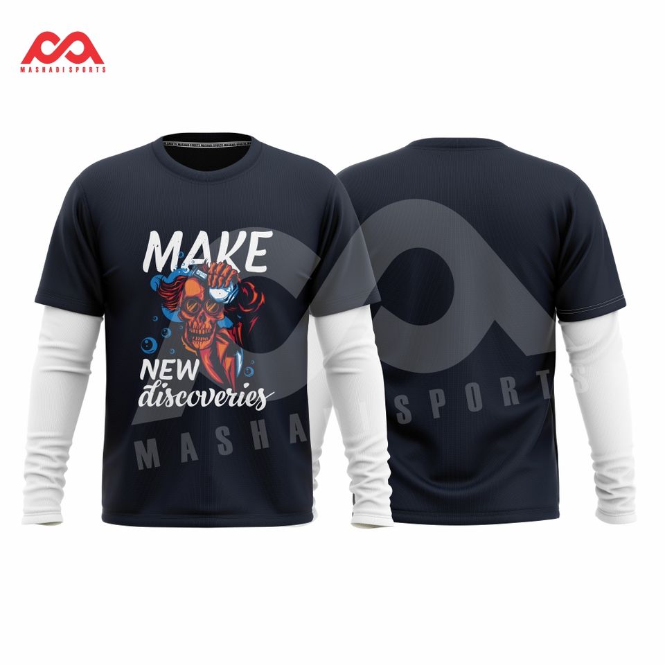 เสื้อยืดคอกลมสำหรับผู้ชายพิมพ์ลายบนหน้าจอผ้าฝ้ายไซส์ใหญ่แขนสองชั้นระบายอากาศได้ดีเสื้อยืดผ้าฝ้าย100%