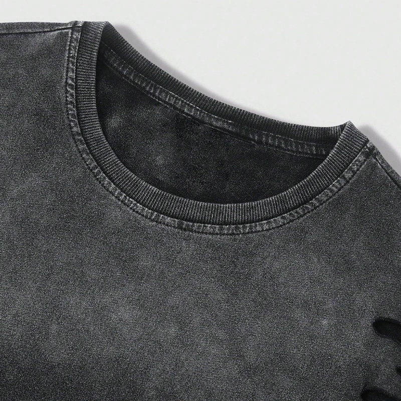 เสื้อยืดคอกลมทรงโอเวอร์ไซส์ผ้าคอตตอนถักคุณภาพสูงสำหรับผู้ชาย สไตล์สตรีทแวร์ ลุคทำสีซีดแบบย้อมกรด น้ำหนักผ้า 180 กรัม รับสั่งทำพิเศษ