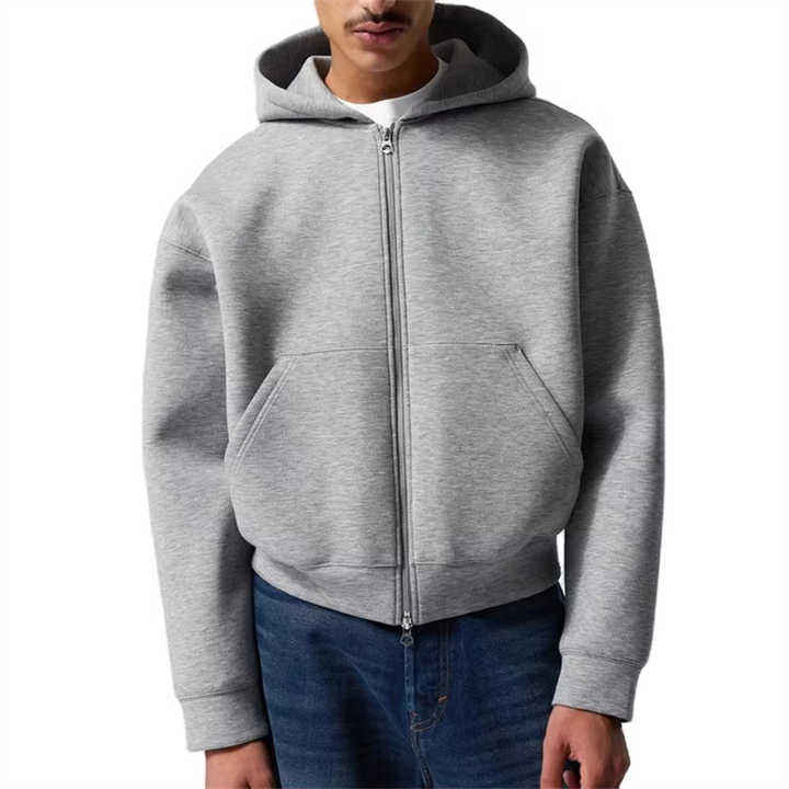 เสื้อฮู้ดสะพายไหล่โอเวอร์ไซส์ของผู้ชาย500GSM เทอร์รี่รุ่นคร็อปซิปรูด
