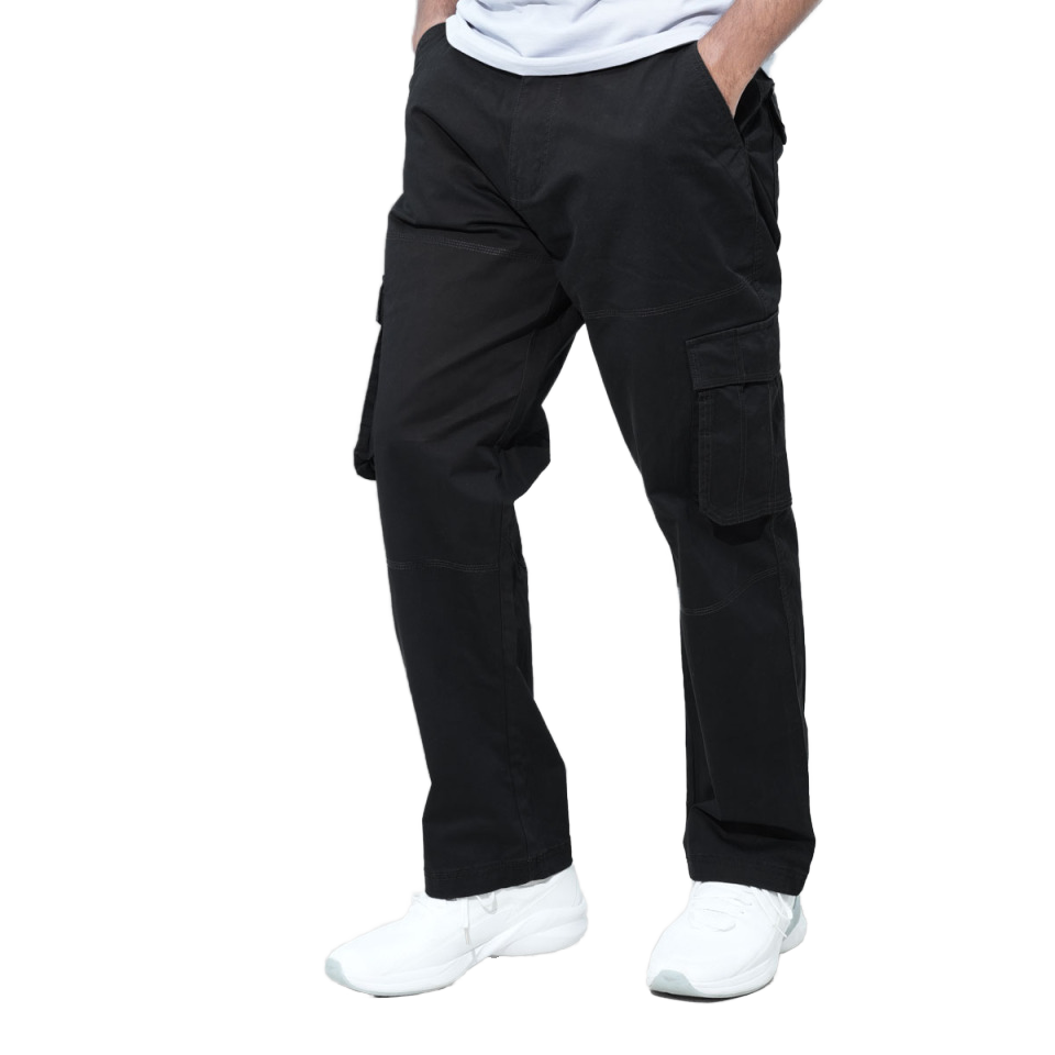 กางเกงคาร์โก้ผู้ชาย, กางเกงคาร์โก้ผ้าฝ้ายลำลองสีดำเอวกลางหลายกระเป๋าตรงไฮสตรีท