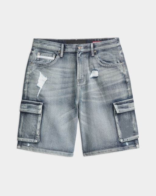 กางเกงยีนส์ขาสั้นคาร์โก้ผู้ชายไซส์ใหญ่คุณภาพสูง ผ้าฝ้ายระบายอากาศดี สวมใส่สบาย รับสกรีนโลโก้