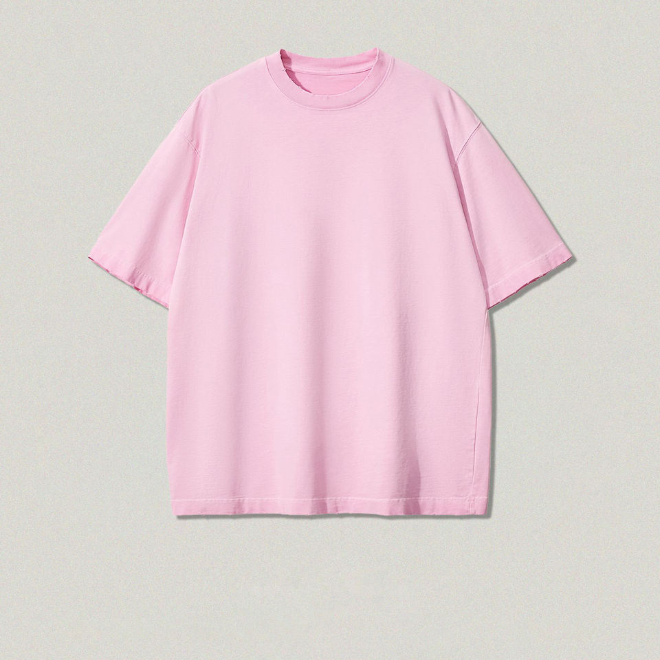 เสื้อยืดผู้ชายไซส์ใหญ่คุณภาพสูง ผ้าถักลายฟอกสี 100% ผ้าฝ้ายเนื้อหนา ลุคย้อนยุค สีซีดจางแบบโดนแดด แห้งเร็ว