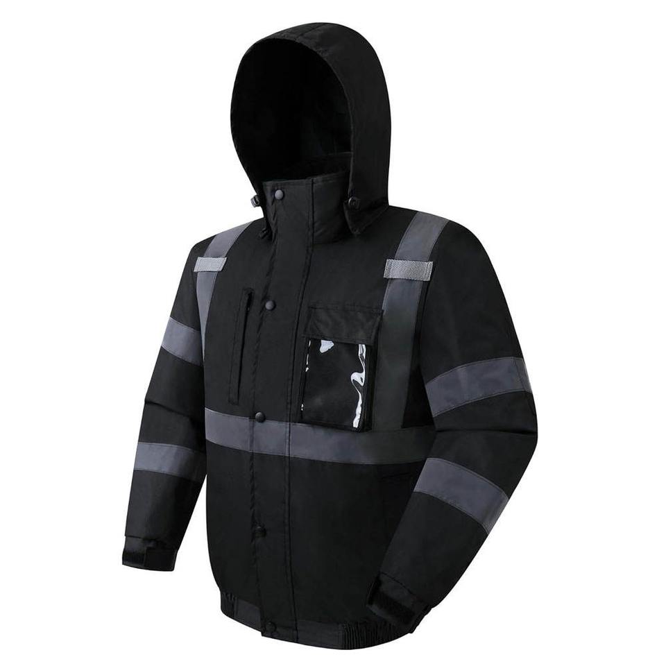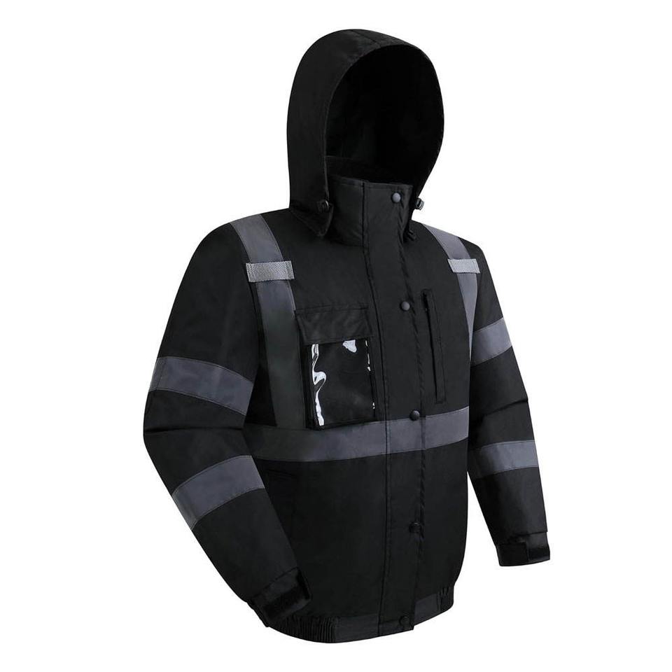แจ็กเก็ตเซฟตี้สะท้อนแสงของผู้ชายเสื้อแจ็คเก็ตผ้าโพลีเอสเตอร์ชุดทำงานชุดทำงานเสื้อแจ็คเก็ตนิรภัยโลโก้ออกแบบได้ตามต้องการ