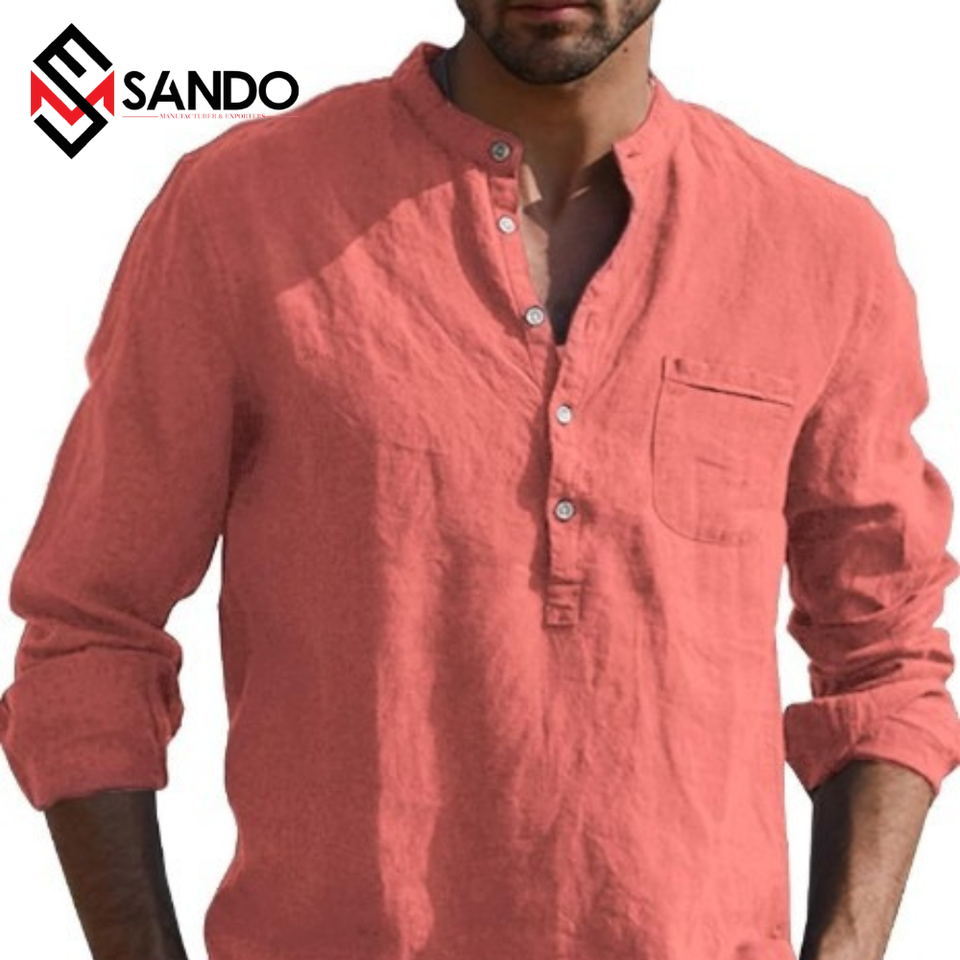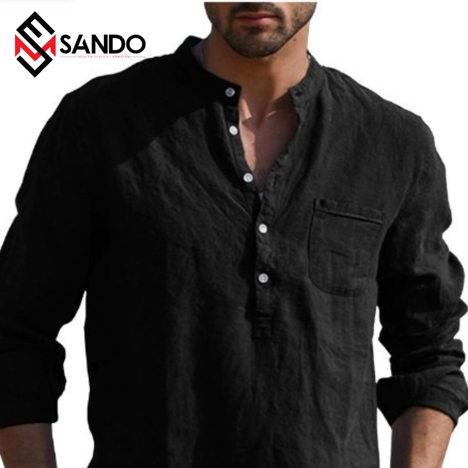 คุณภาพสูงผู้ชายสไตล์ซาฟารีเสื้อแขนยาว Anti-Pilling แห้งเร็วผ้าฝ้ายพลัสขนาด V คอ Tie-ย้อมสําหรับฤดูร้อน