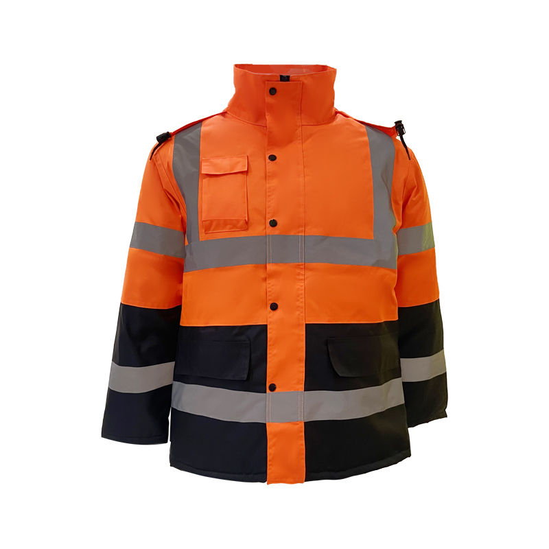 เสื้อกั๊กนิรภัยสำหรับผู้ชายเสื้อกั๊กนิรภัยกันน้ำแบบสะท้อนแสงแอนซี่คลาส1สำหรับงานก่อสร้างในฤดูหนาวโลโก้ตามสั่ง
