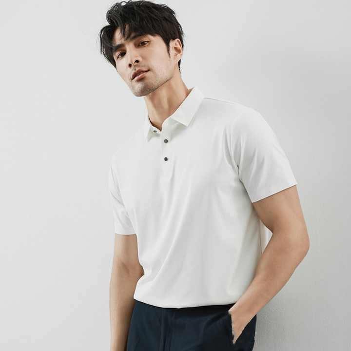 เสื้อเชิ้ตผู้ชายคุณภาพสูง แขนสั้น ผ้าถัก คอตตอน ใส่สบายสำหรับฤดูร้อน มีกระเป๋า แบบเรียบง่าย ระบายอากาศได้ดี สไตล์อังกฤษ แห้งเร็ว ด้านหน้าเรียบ