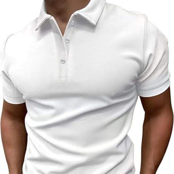 เสื้อเชิ้ตแขนสั้นผู้ชายคุณภาพสูง ผ้าถักปักลาย สีพื้น สไตล์ลำลอง ผ้าฝ้าย 100%