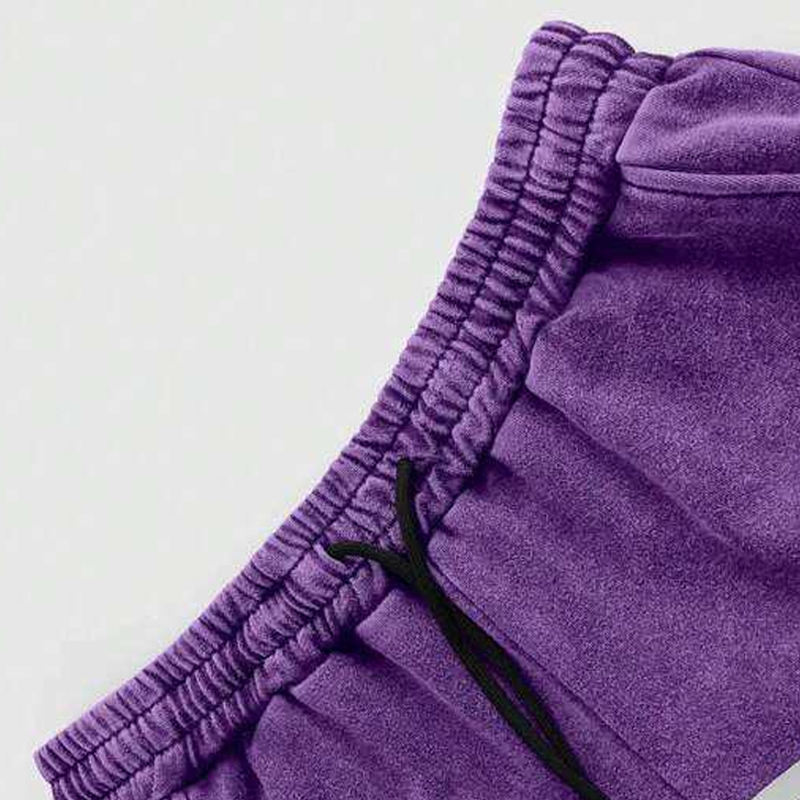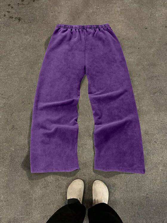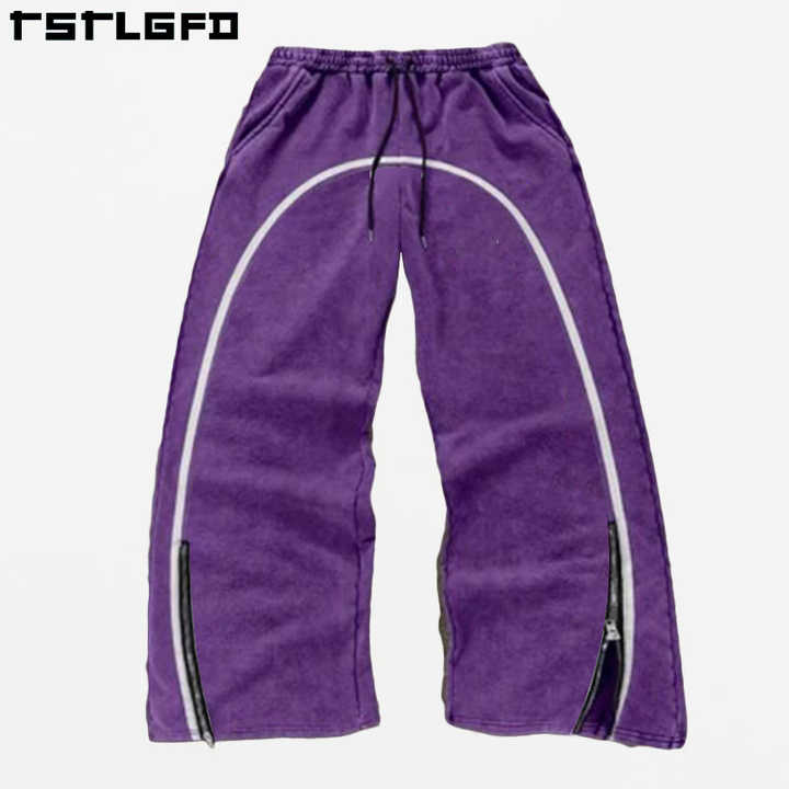 กางเกงวอร์มขายาวทรงหลวมลายทางด้านข้างคุณภาพสูงสำหรับผู้ชาย สีม่วงซีดแบบฟอกสี