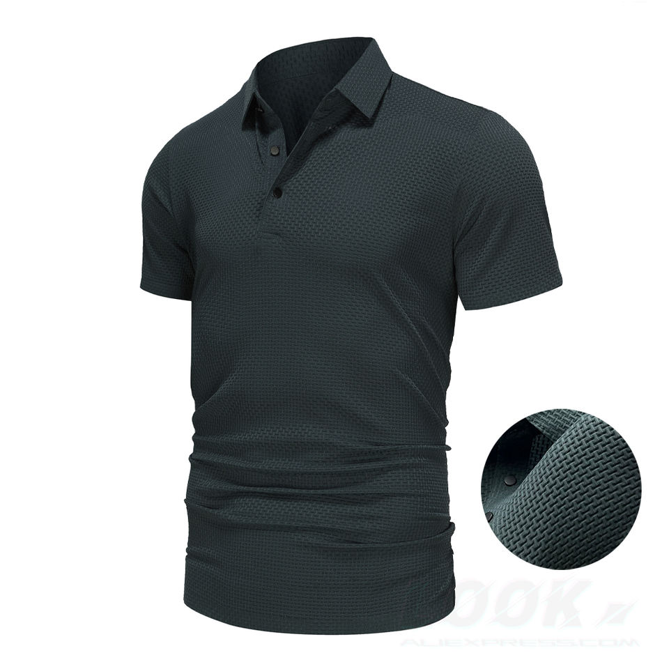 เสื้อโปโลแขนสั้นเข้ารูปสำหรับผู้ชาย, เสื้อกอล์ฟระบายอากาศได้ดีฤดูร้อนแห้งเร็วคุณลักษณะสีพื้นสำหรับฟิตเนส