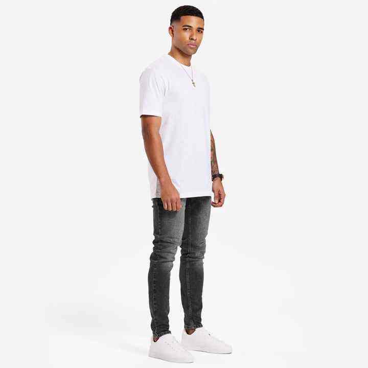 กางเกงยีนส์ทรงสลิมฟิตสำหรับผู้ชายดีไซน์คลาสสิกฮิปฮอปทันสมัยตกแต่งด้วยหมุดผ้าทนทานซักได้สำหรับสวมใส่ในชีวิตประจำวัน