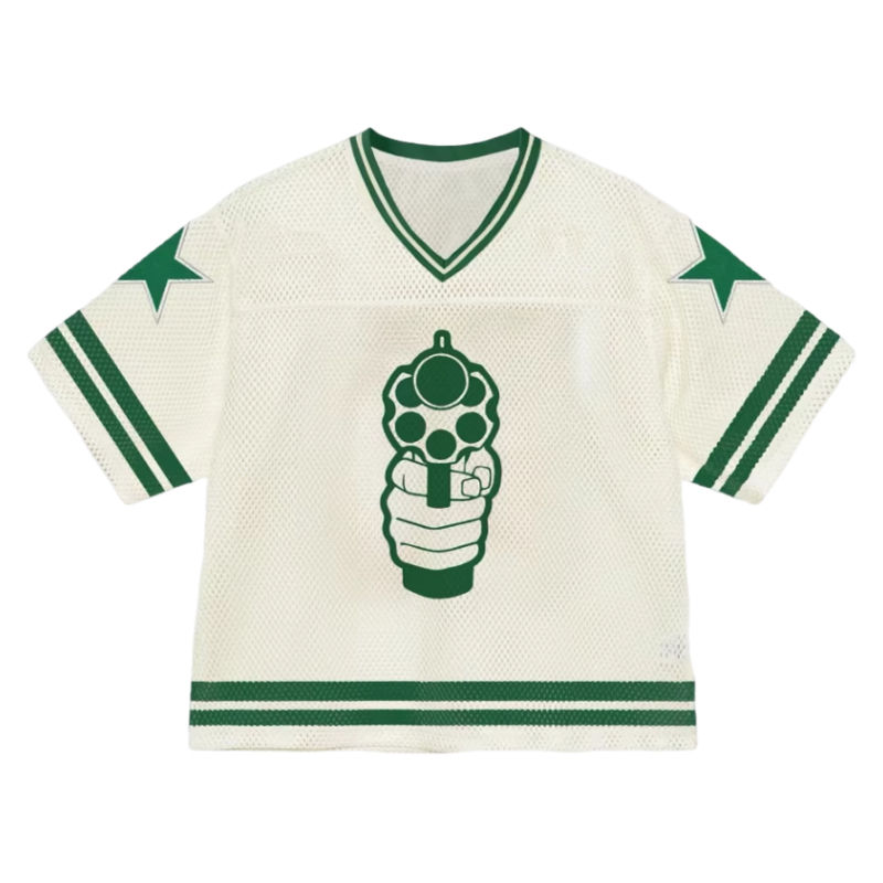 เสื้อฟุตบอลตาข่ายผู้ชายคุณภาพสูง แฟชั่นผ้าตาข่าย/โพลีเอสเตอร์ ทรงบ็อกซี่ ใส่สบาย พิมพ์ลาย